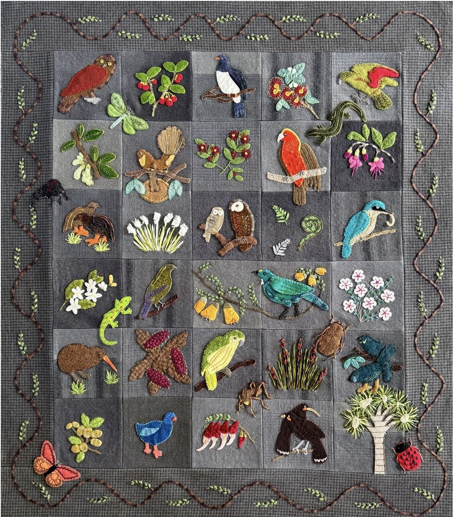 Stitch a forest of native New Zealand flora and fauna in delicious hand-dyed wool. Over 30 little critters; birds, flowers, berries and bugs, will adorn your quilt in an array of vibrant and earthy tones.